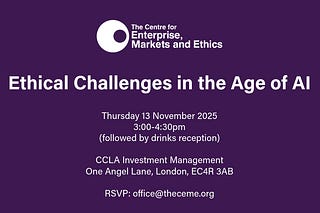 The Centre for Enterprise, Markets and Ethics is pleased to announce an event in November 2025: Ethical Challenges in the Age of AI